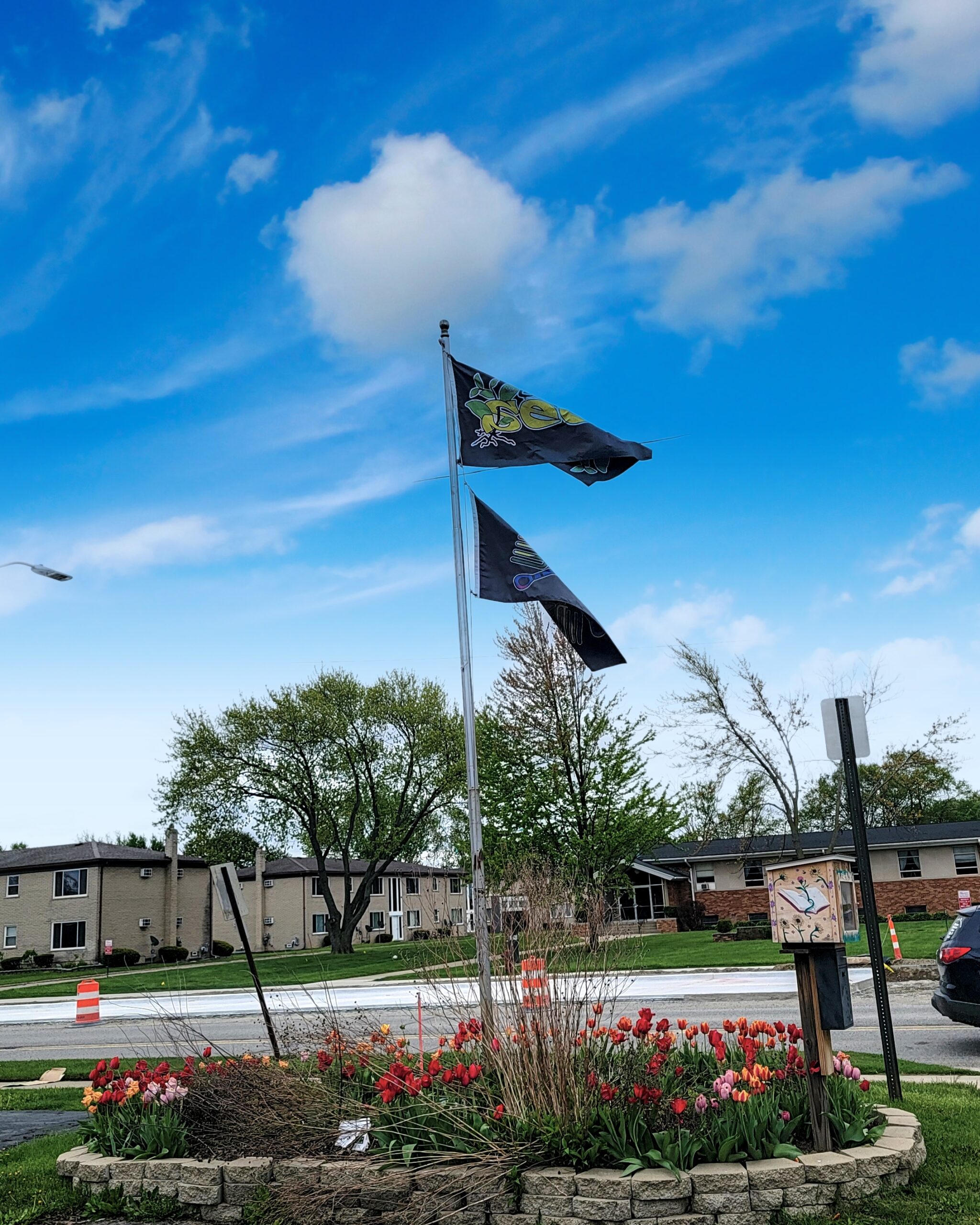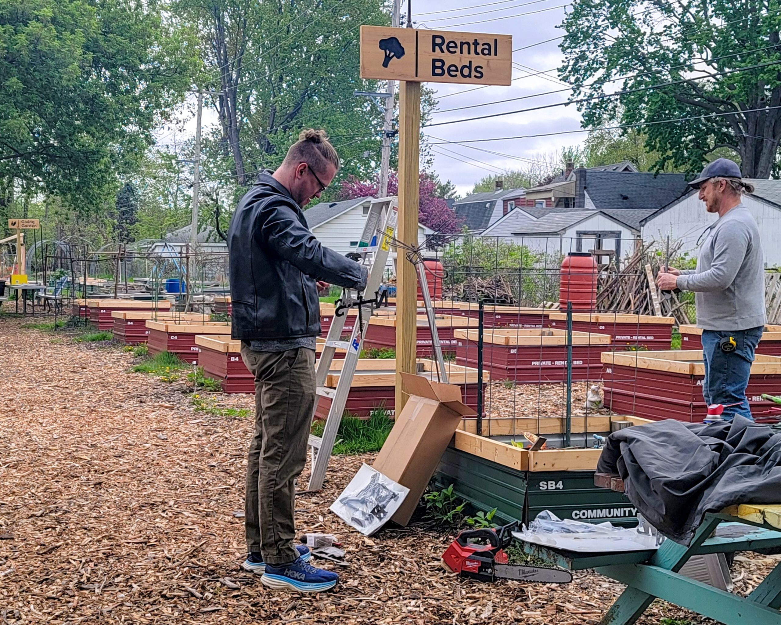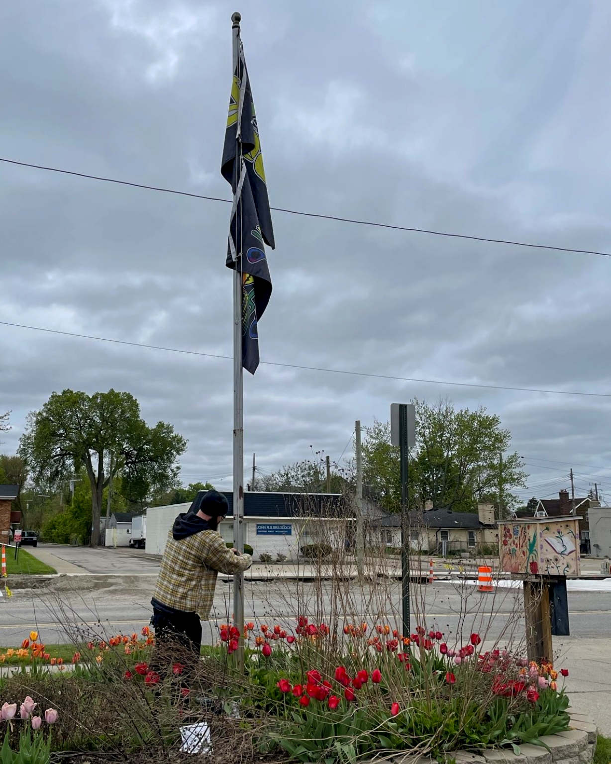 One of my favorite traditions happened early in the day – raising our flags for the season! There’s something special about seeing those colors flutter in the breeze, signaling to everyone passing by that the Eastpointe Community Garden is open and ready to welcome new friends.