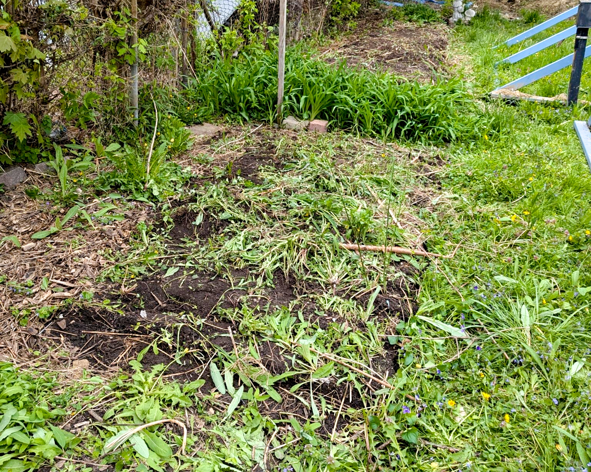 The berry bed transformation continued with multiple hands pitching in. Katie, Darren, Craig, and John all worked to clean up the long-neglected area – pulling weeds, removing old wood, and prepping for something new and wonderful.