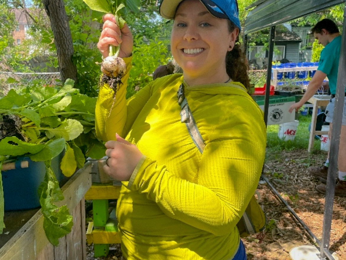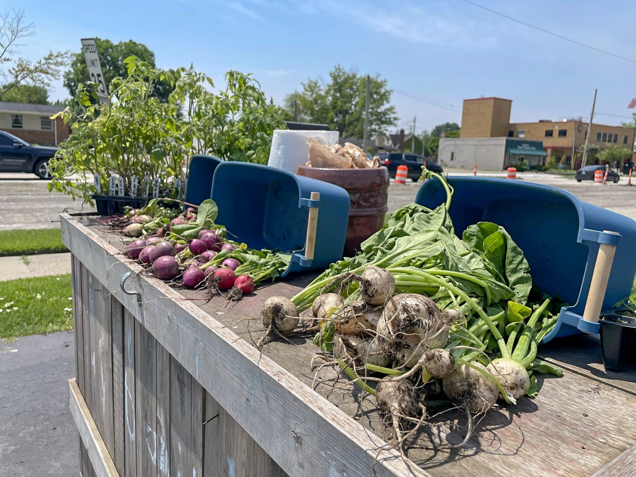 And those tomato plants? Our own Jen works at MI Gardener now (shoutout to one of our long-time fav seed companies!), and they donated heirloom tomato plants for our produce stand. Not just any tomatoes – these are the good stuff that visitors can take home and grow their own gardens with.