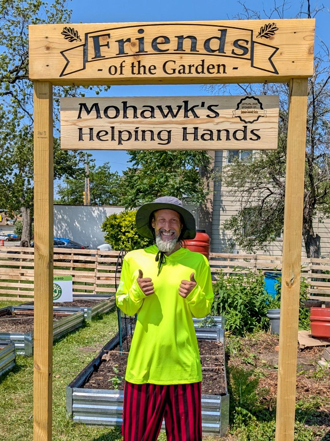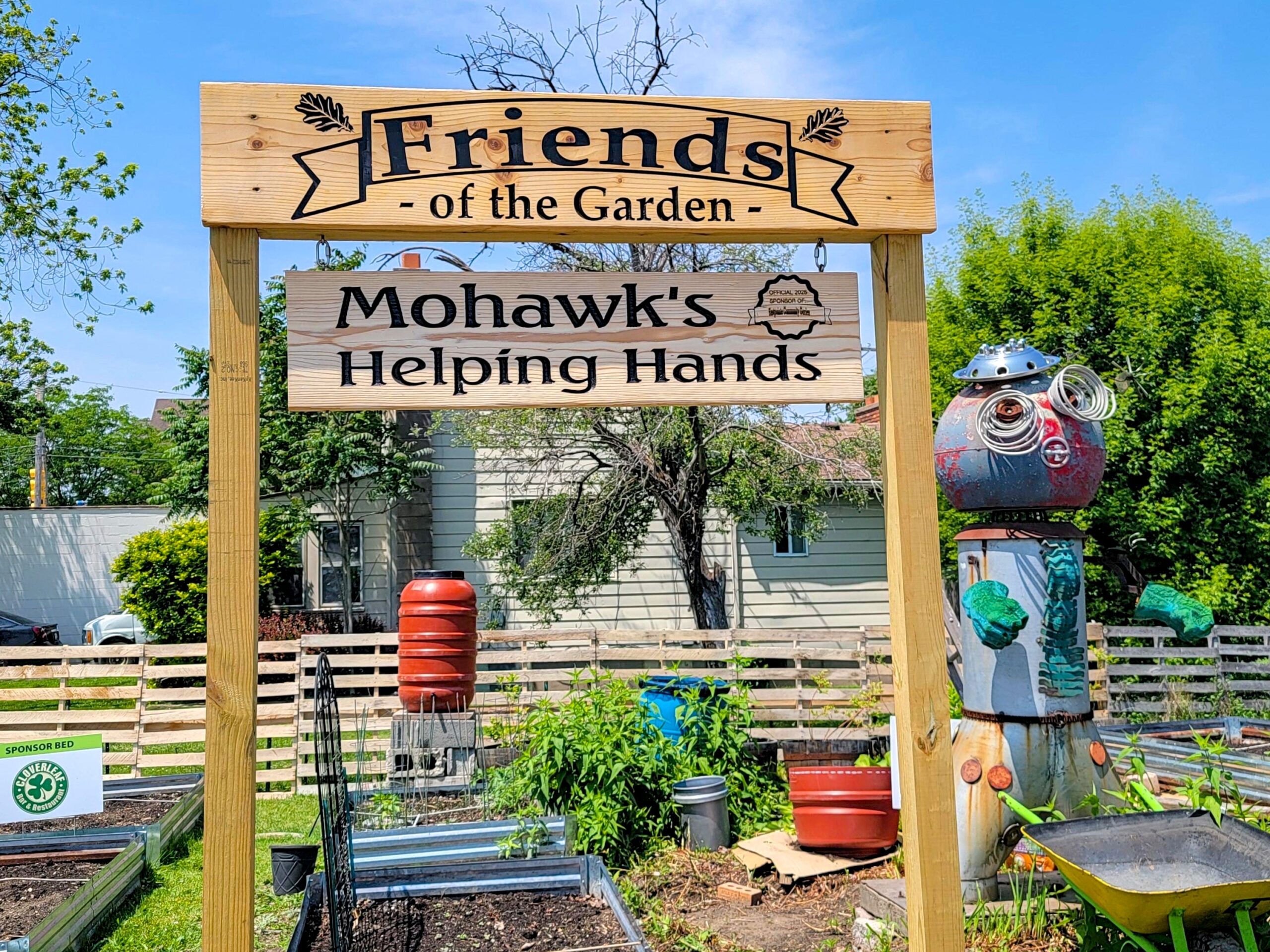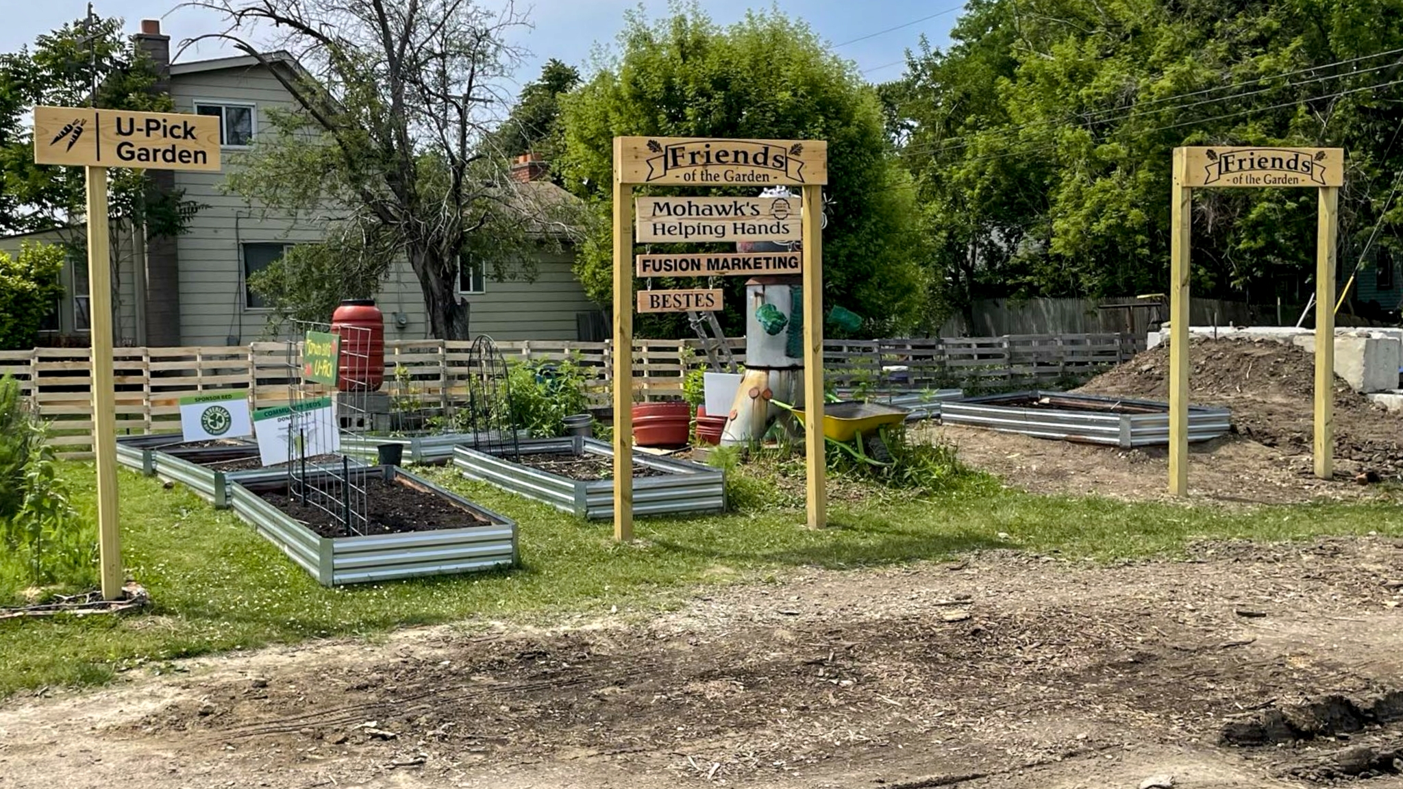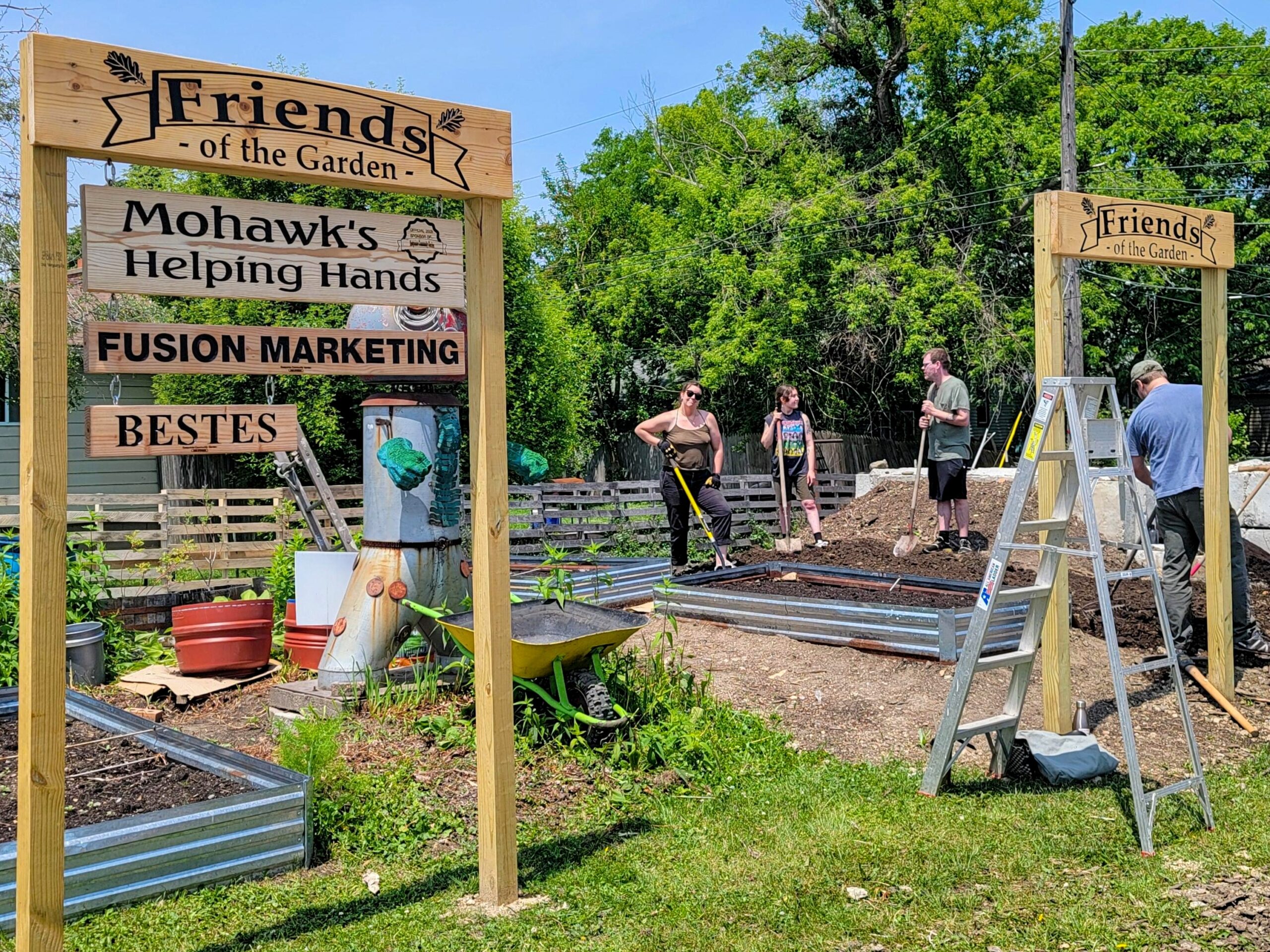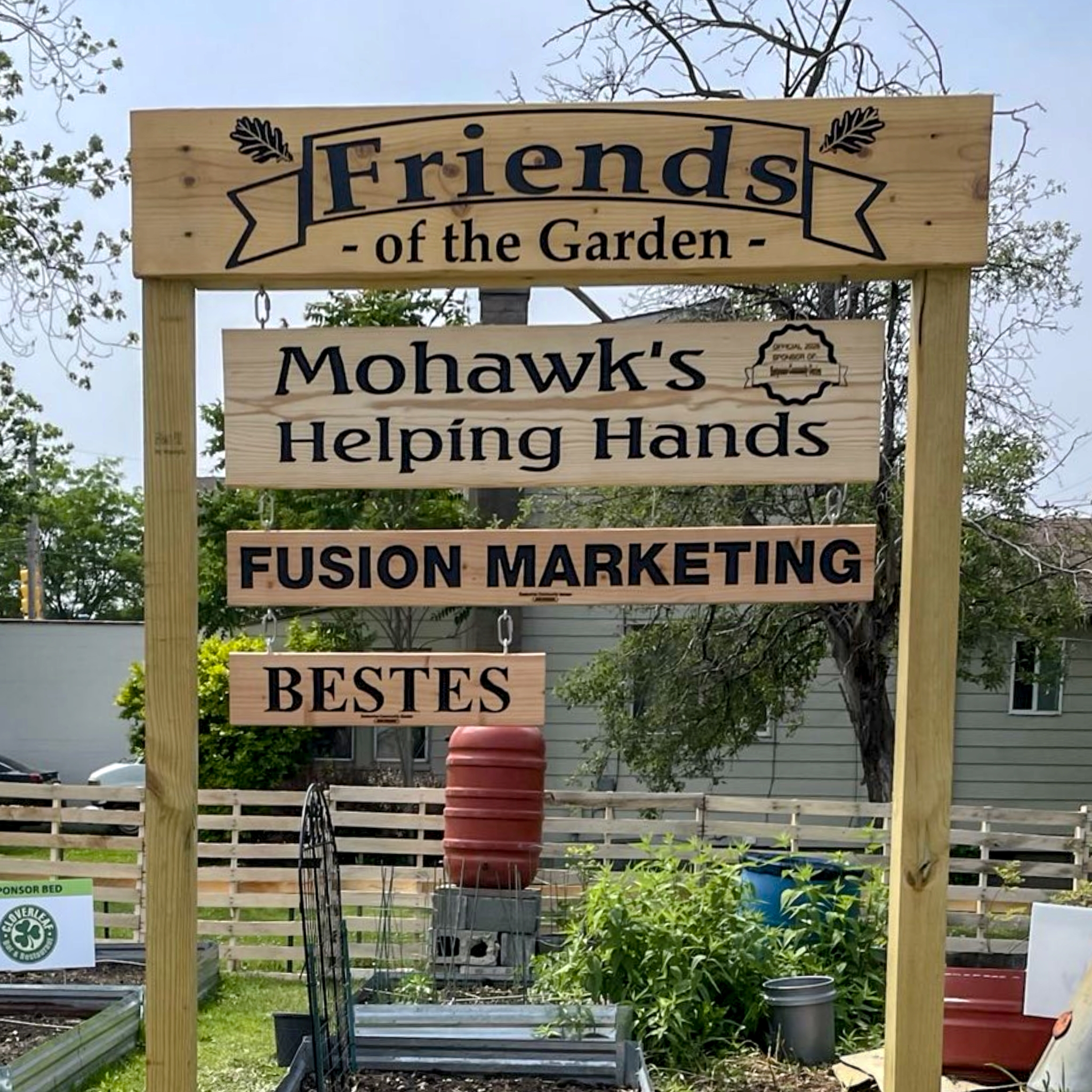 All right, so here’s the whole idea behind the Friends of the Garden signs. We only have so much room for businesses to sponsor beds without the garden turning into a terrible rendition of NASCAR. So over the winter we brainstormed and decided that we wanted to build out a specific area where we could highlight all of the businesses that support us. Something where they were front and center for everybody to see. And that’s how the Friends of the Garden was born.