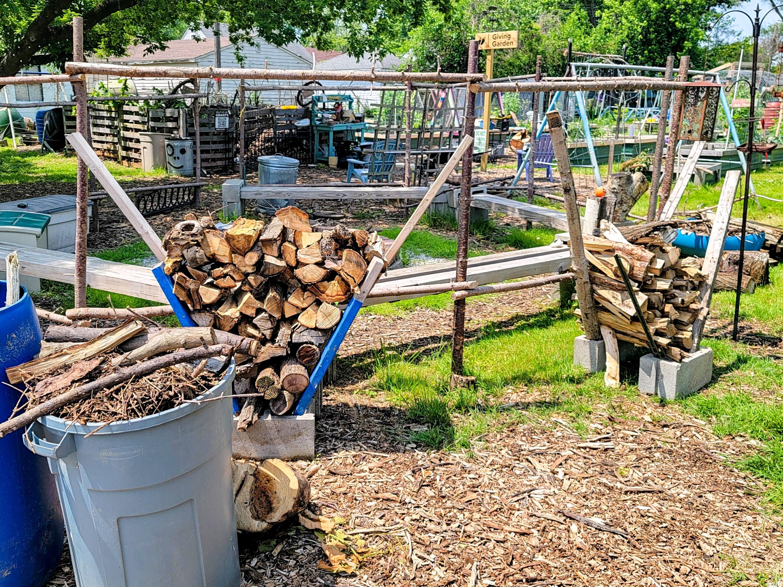 Lauren brought her friend Chloe who was “super impressed with the garden and all of our cool volunteers!” (pretty sure she was talking about me) They leveled dirt near the U-Pick beds with Nico, moved logs, and stacked sticks – it was like one of those oversized Jenga games -but better!