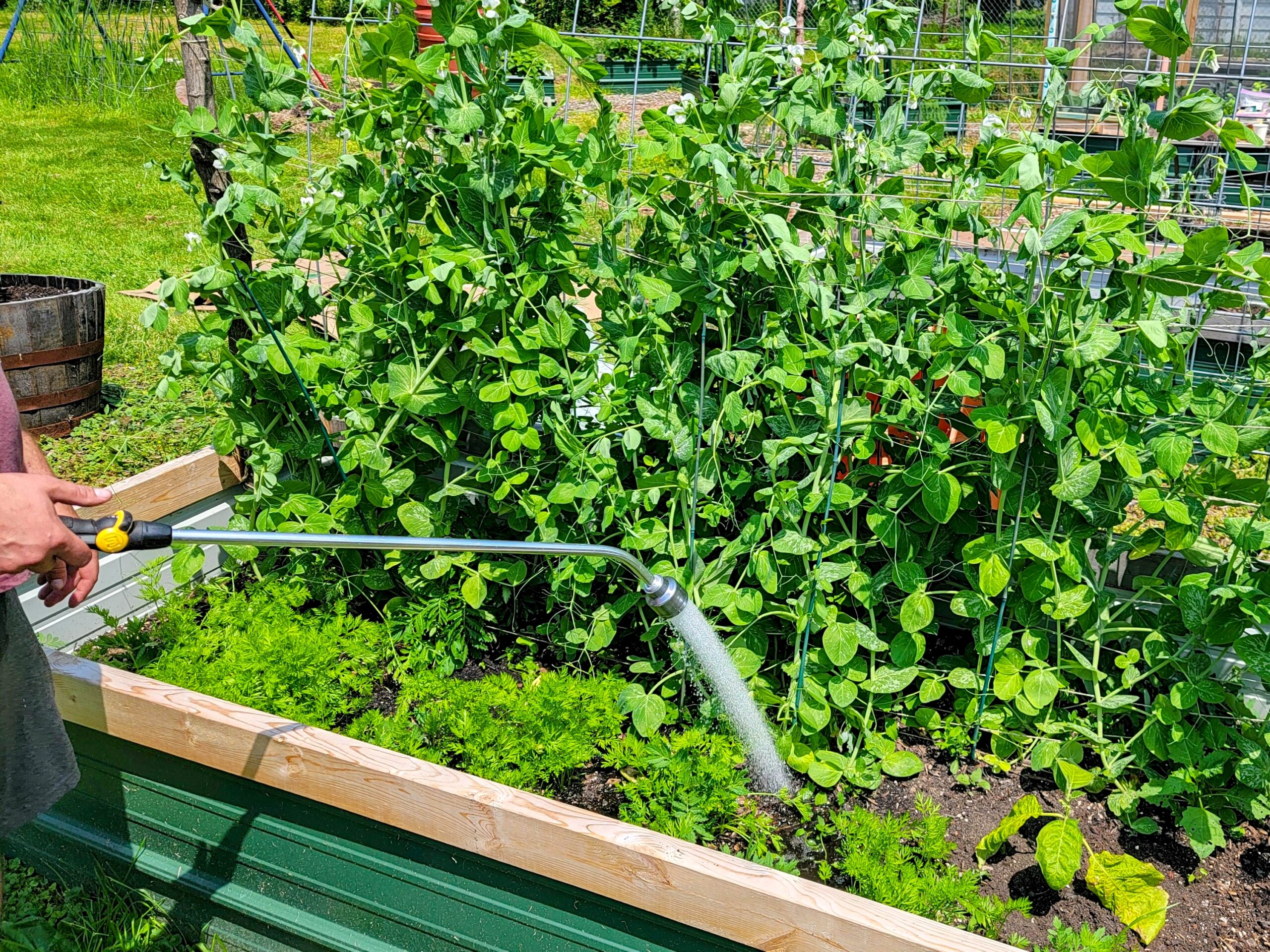 Katie and Caleb were productivity machines: “Today Caleb and I planted a bed of sweet corn, I planted beans and weeded, Sarah and I harvested and manned the produce stand with Nico, where we gave away most of the radishes, 5 lbs of lentils, all the celery seedlings, and most of the tomato seedlings.”