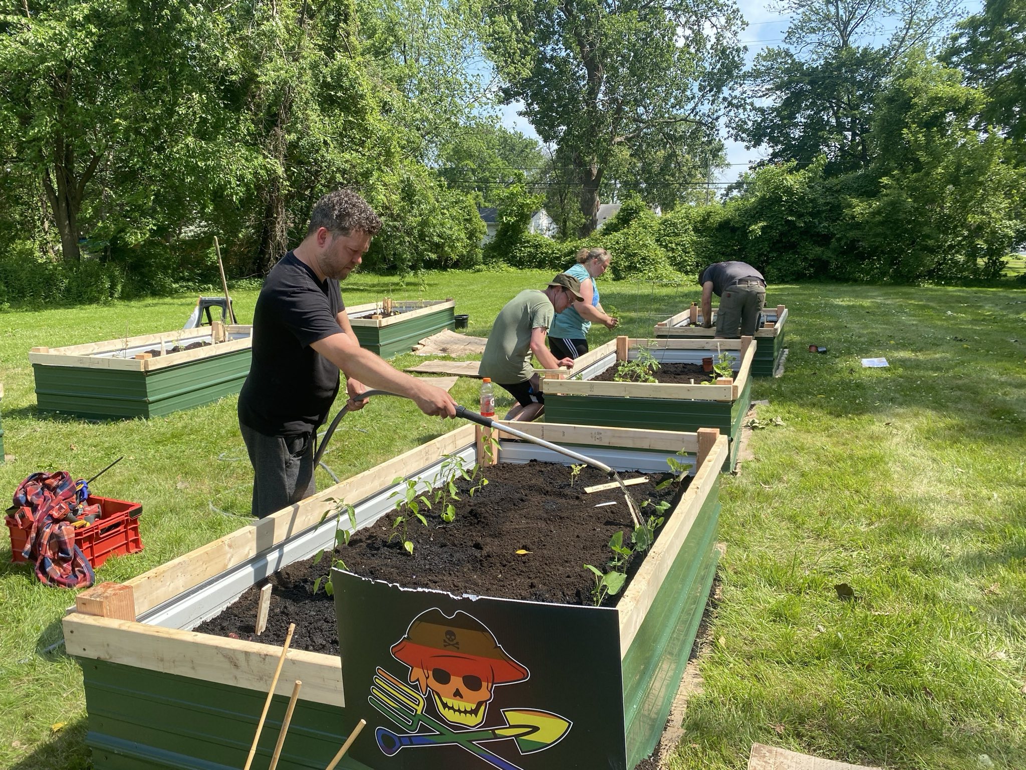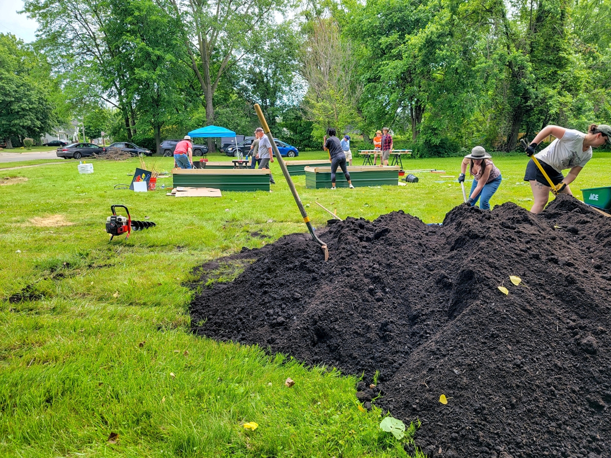 Bottom line up front: We absolutely crushed it! Despite 90-degree heat and not even having all our beds ready, 16-20 amazing humans showed up to make magic happen at our brand new South Warren Community Garden. This was community gardening at its finest, folks!