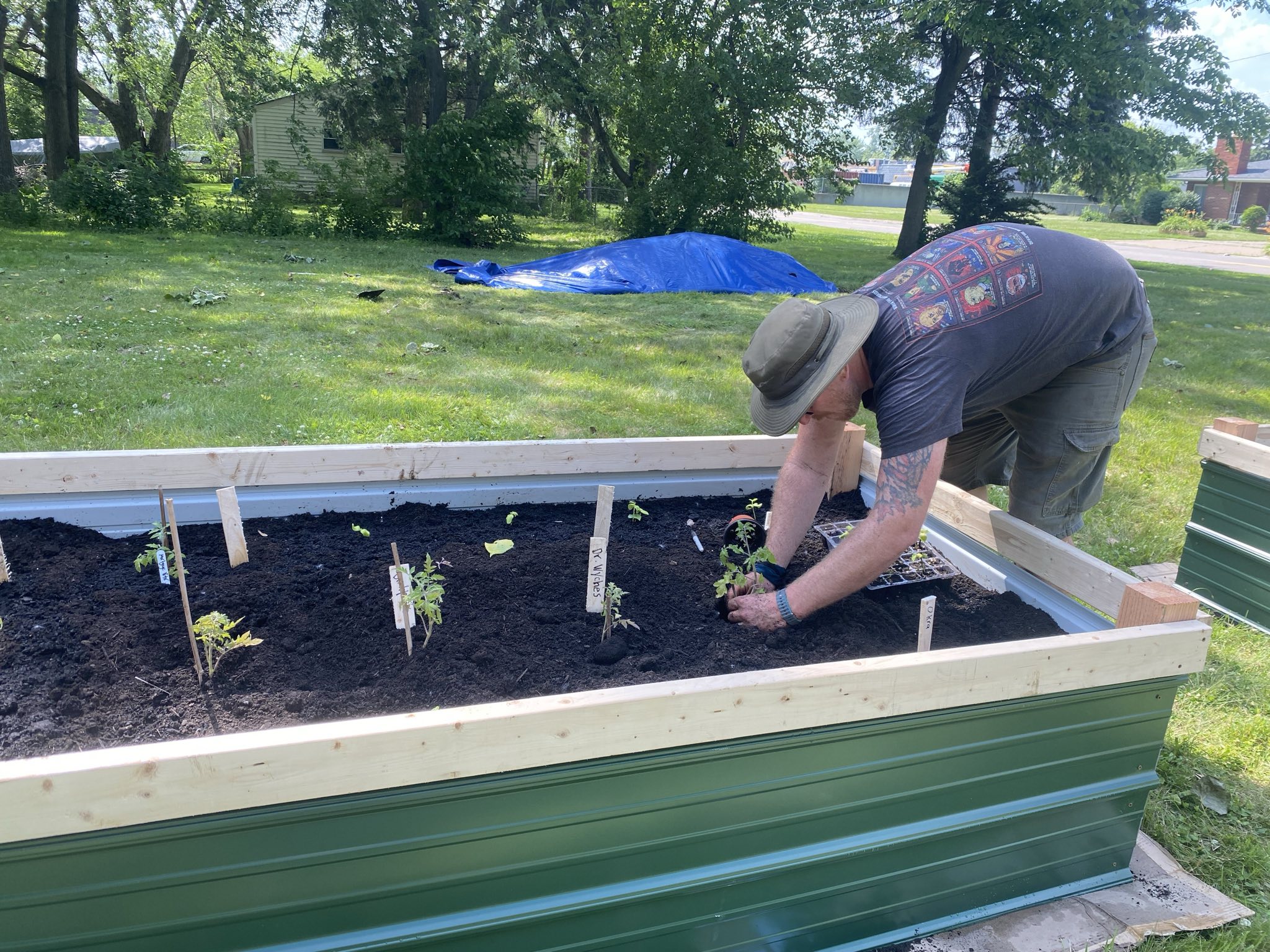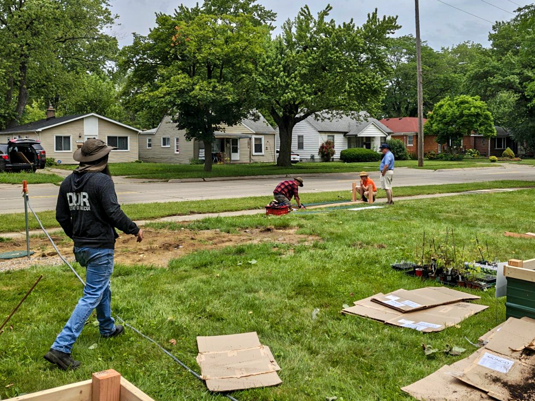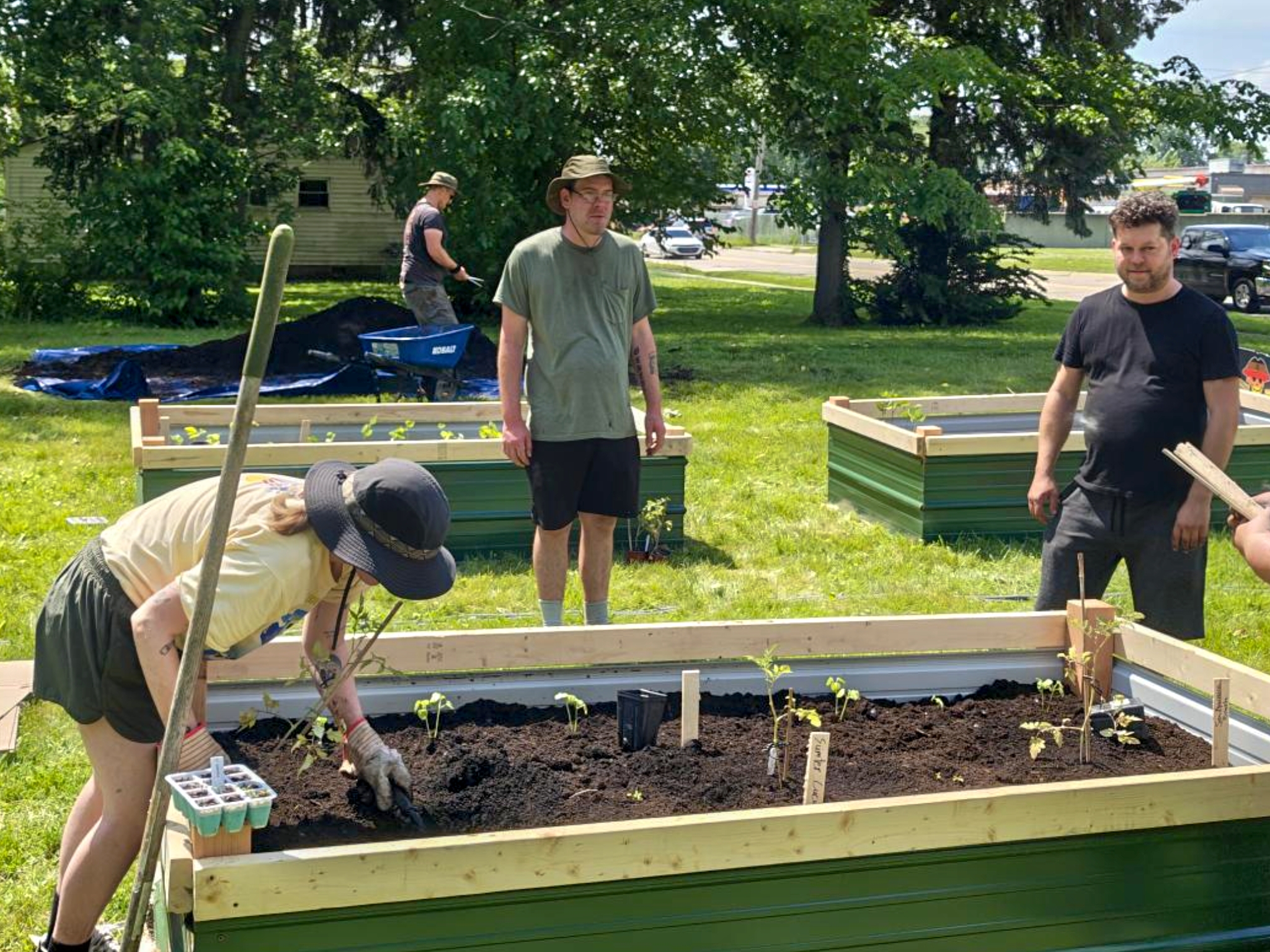 Around 2:30, I had to bail for a heat break (smart gardening means knowing your limits!), but that’s when the crew really hit their stride. While I was cooling off somewhere with air conditioning, everyone dove into the fun part – planting time!
