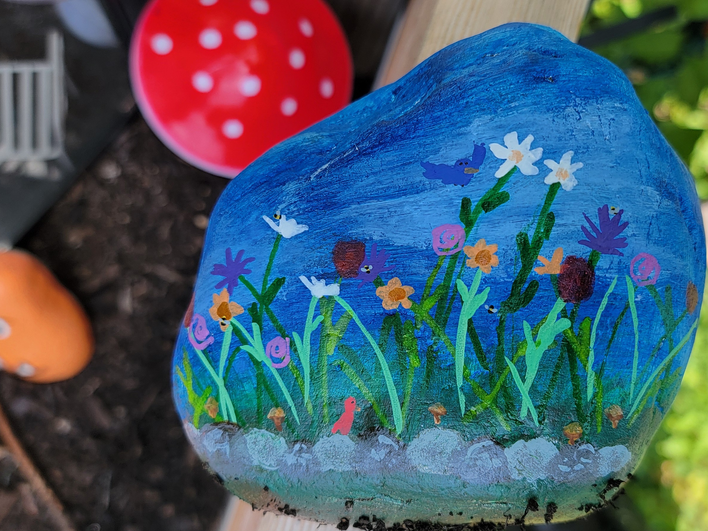 - Shay captured some absolutely stunning photos of the fairy garden, including some magical shots with a custom doll her sister made in Arizona. She also painted a beautiful rock with flowers that’s going to be perfect for the fairy garden.