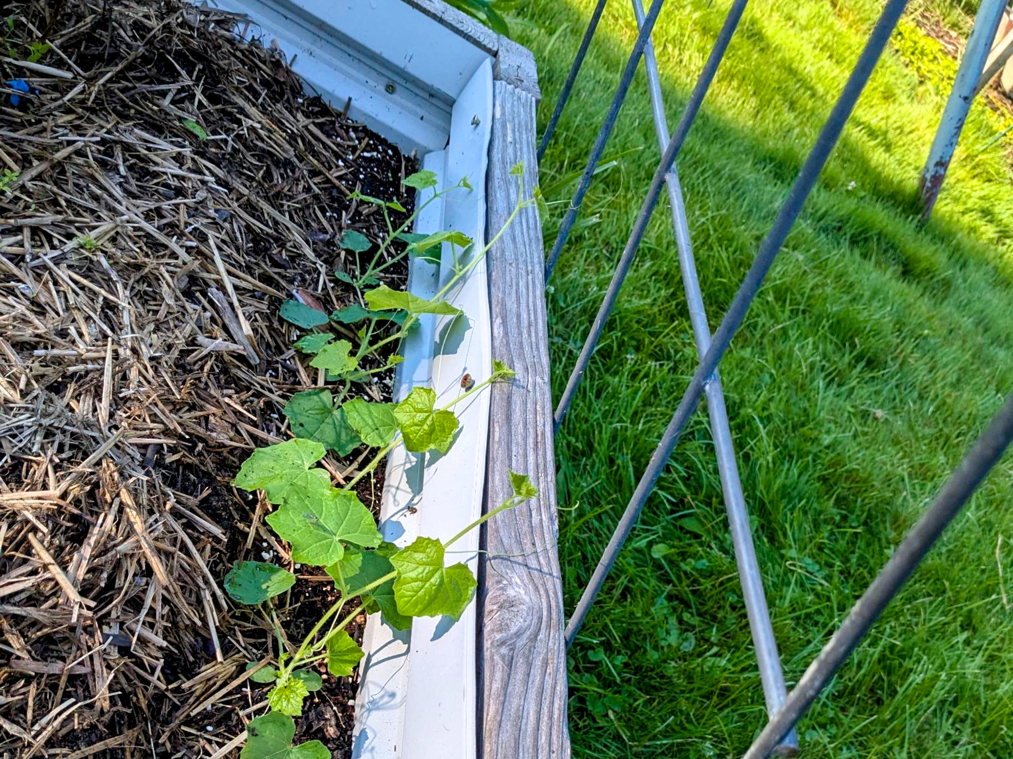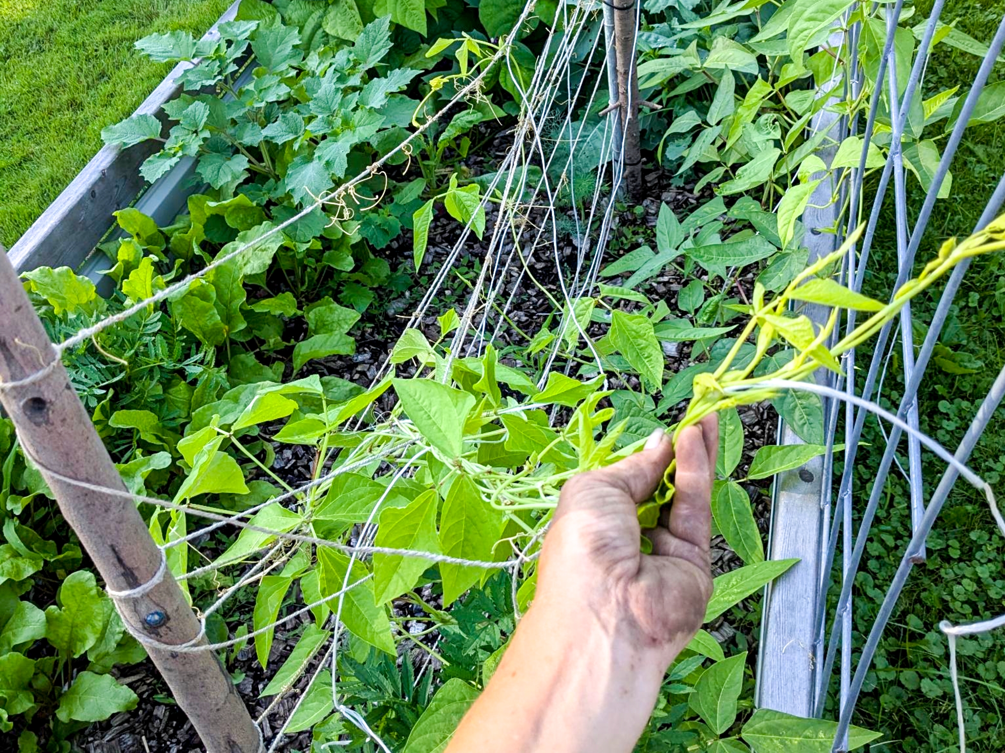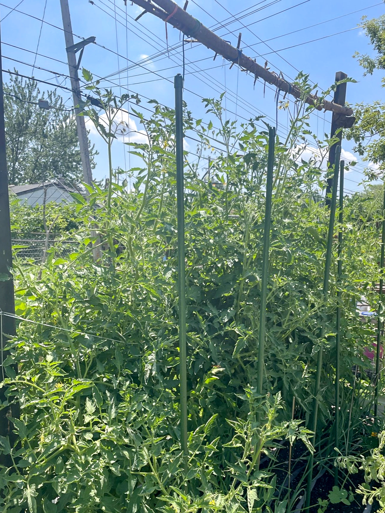 The weather tried to cut our day short, but this crew knows how to work efficiently! Coley cleaned up giving garden beds 1, 2, and 3 and replanted cucumbers, zucchini, and beets. Jen took down pea trellis string and rerouted beans onto the cattle panel arch, plus did some serious tomato trimming. Everyone pitched in to fill rain barrels and get everything safely put away before the storm hit.