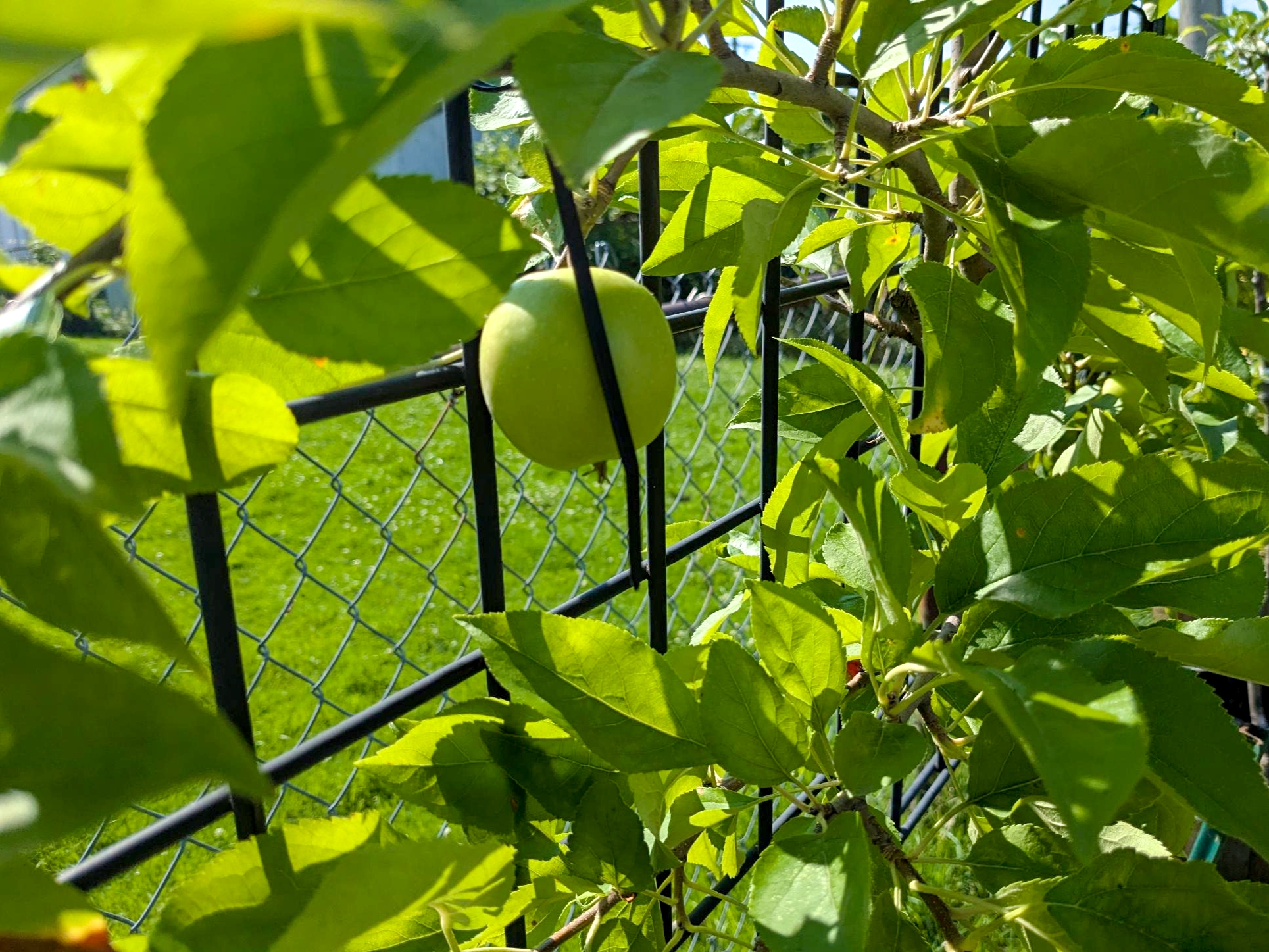 Hold up – I almost forgot the most exciting news of all! Our fruit tree officially has an apple on it! For years, people have been asking us if we have any fruit, and we never had the opportunity to grow fruit trees. If I remember correctly, about 3 years ago, Lisa harvested over 200 pounds of apples from the trees at her house and donated them all through the garden. Since then, she’s been figuring out how to get some fruit trees onto our property.
