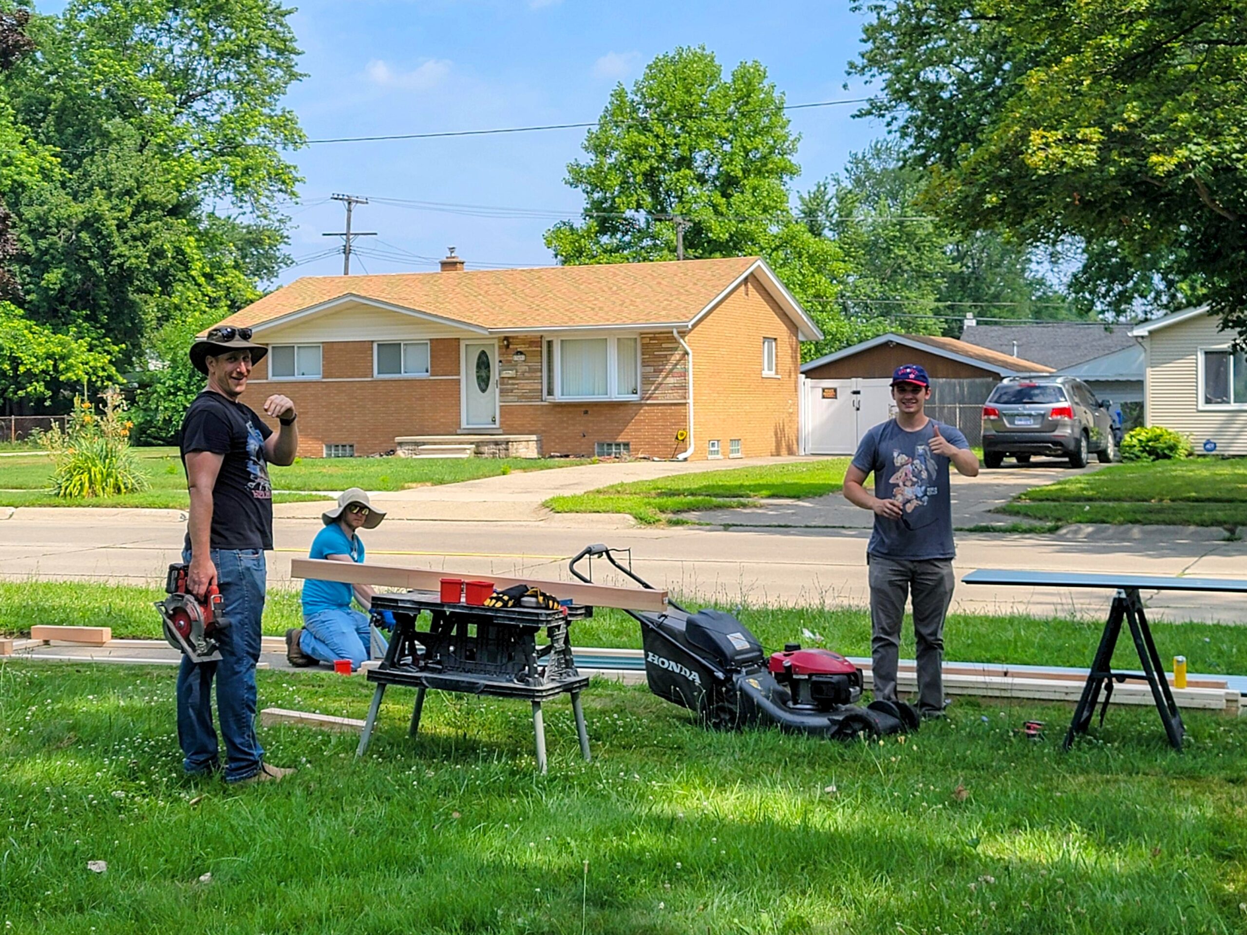 Then Tim and Nick showed up and jumped right in to help! Nick even helped Nico with the lawn mowing for a bit – teamwork makes the dream work!