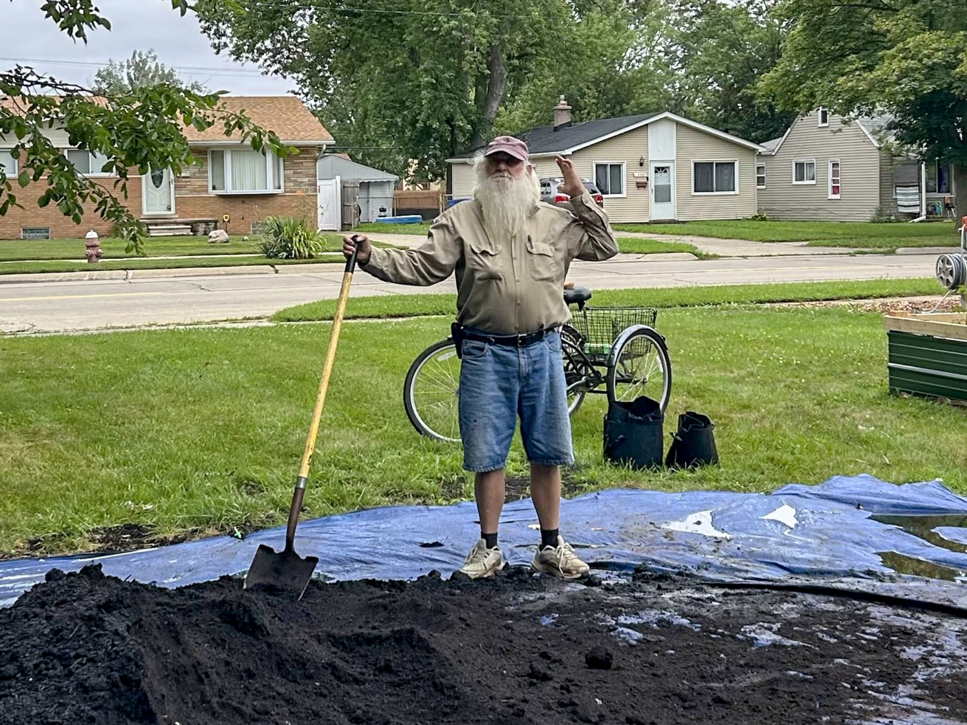 This incredible human lives just a few blocks away and ended up teaching proper shovel technique to both Nico and Lauren (overhand grip for better leverage – who knew?!). He helped us fill wheelbarrows, worked alongside Jody and Nico to get those garden beds filled up, and just… fit right in like he’d been part of our crew forever.