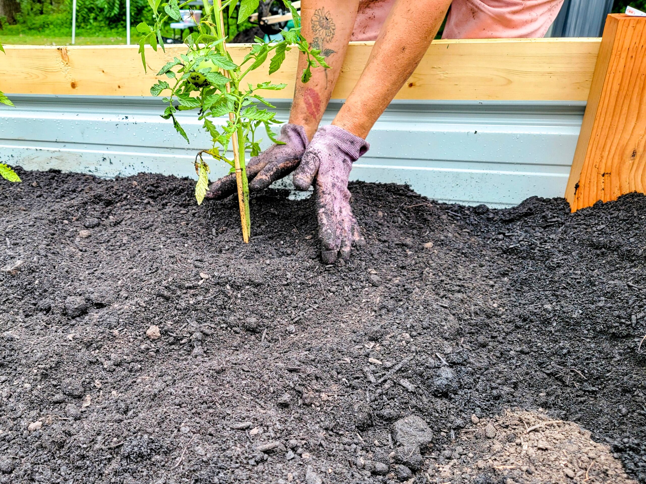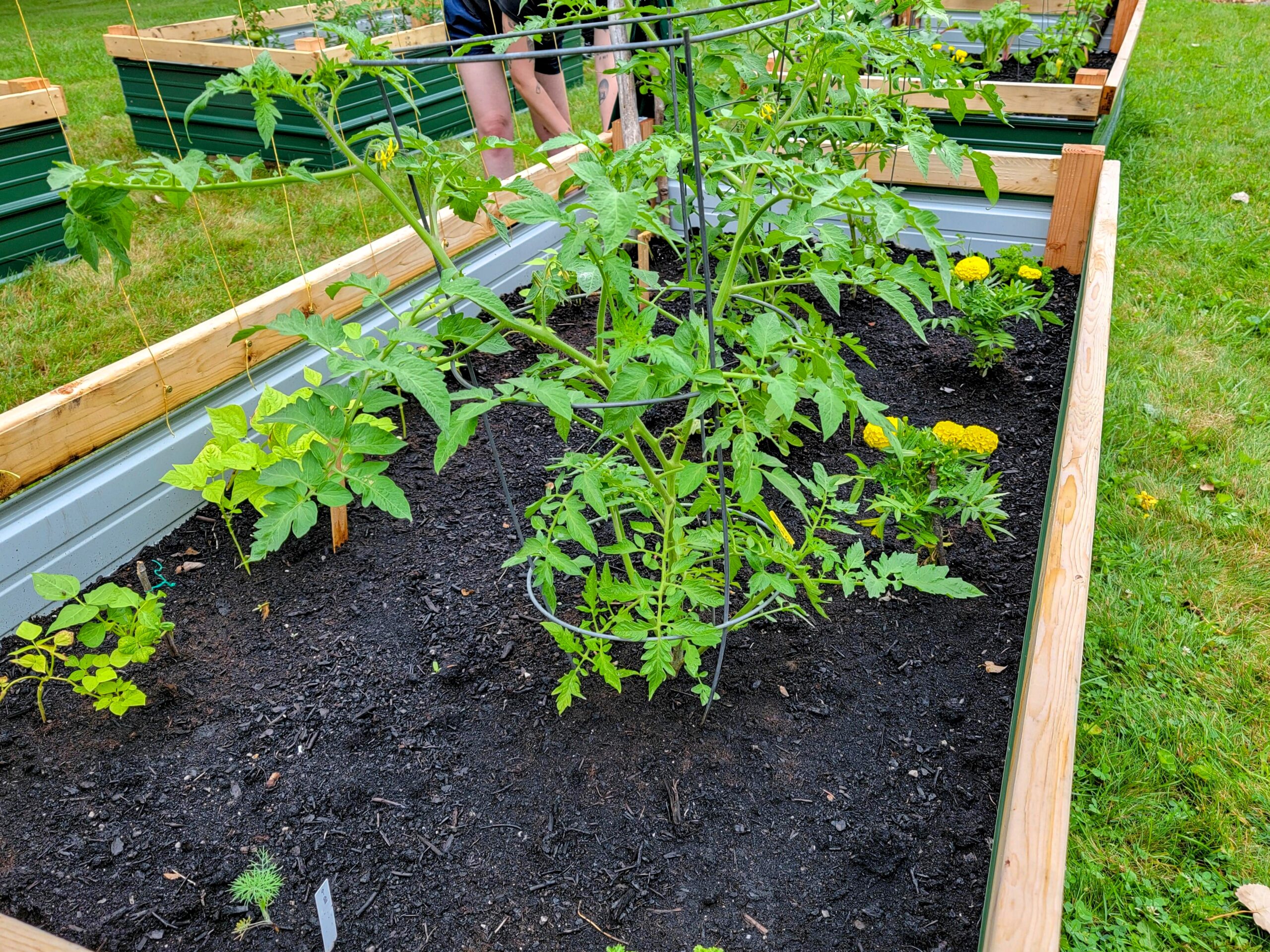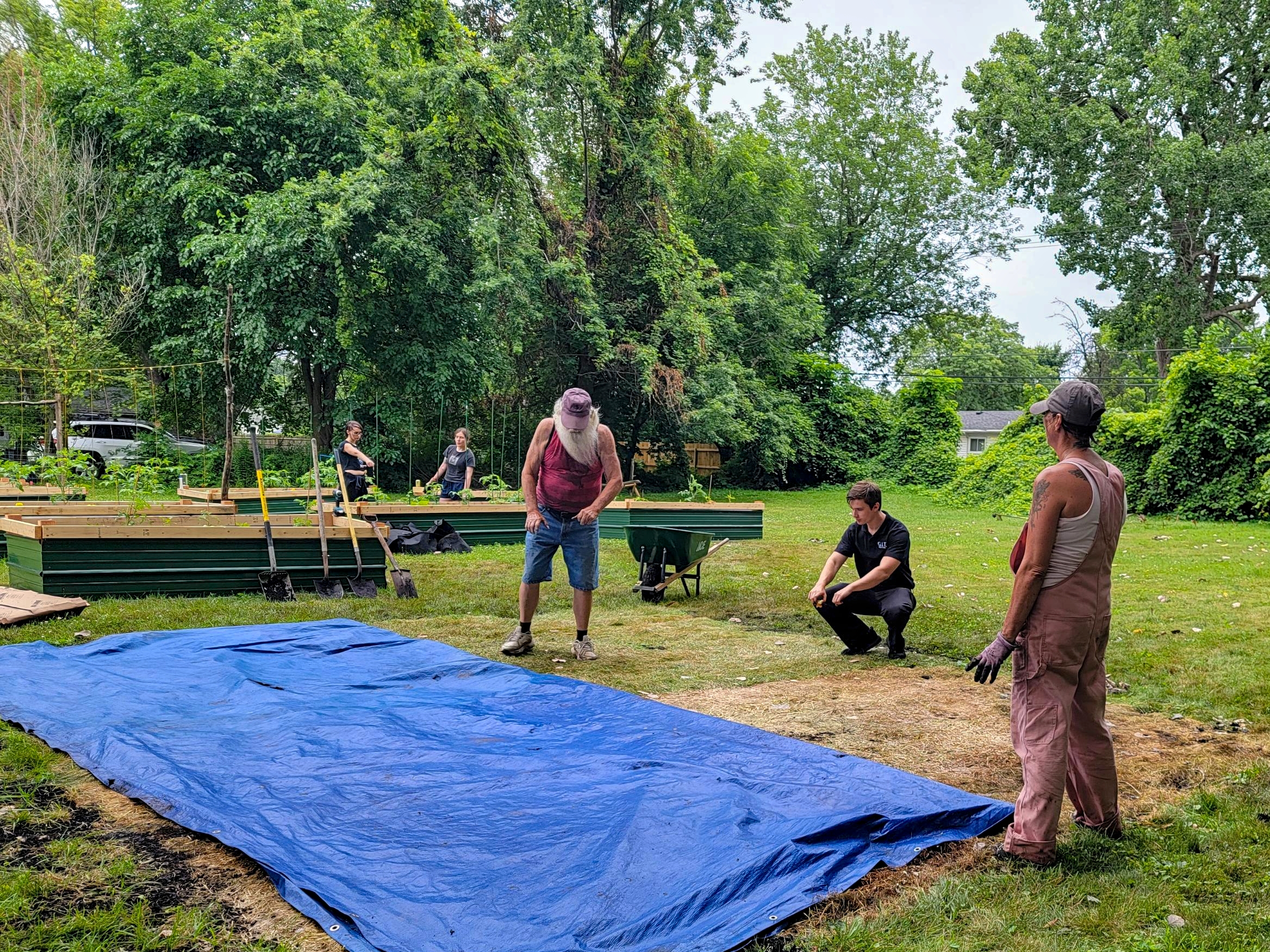 This woman made the trek over and absolutely crushed it – filled raised beds, planted tomatoes and peppers, leveled beds, and connected with everyone (especially Jimmy, who basically adopted her as his gardening buddy). Talk about jumping in with both feet!