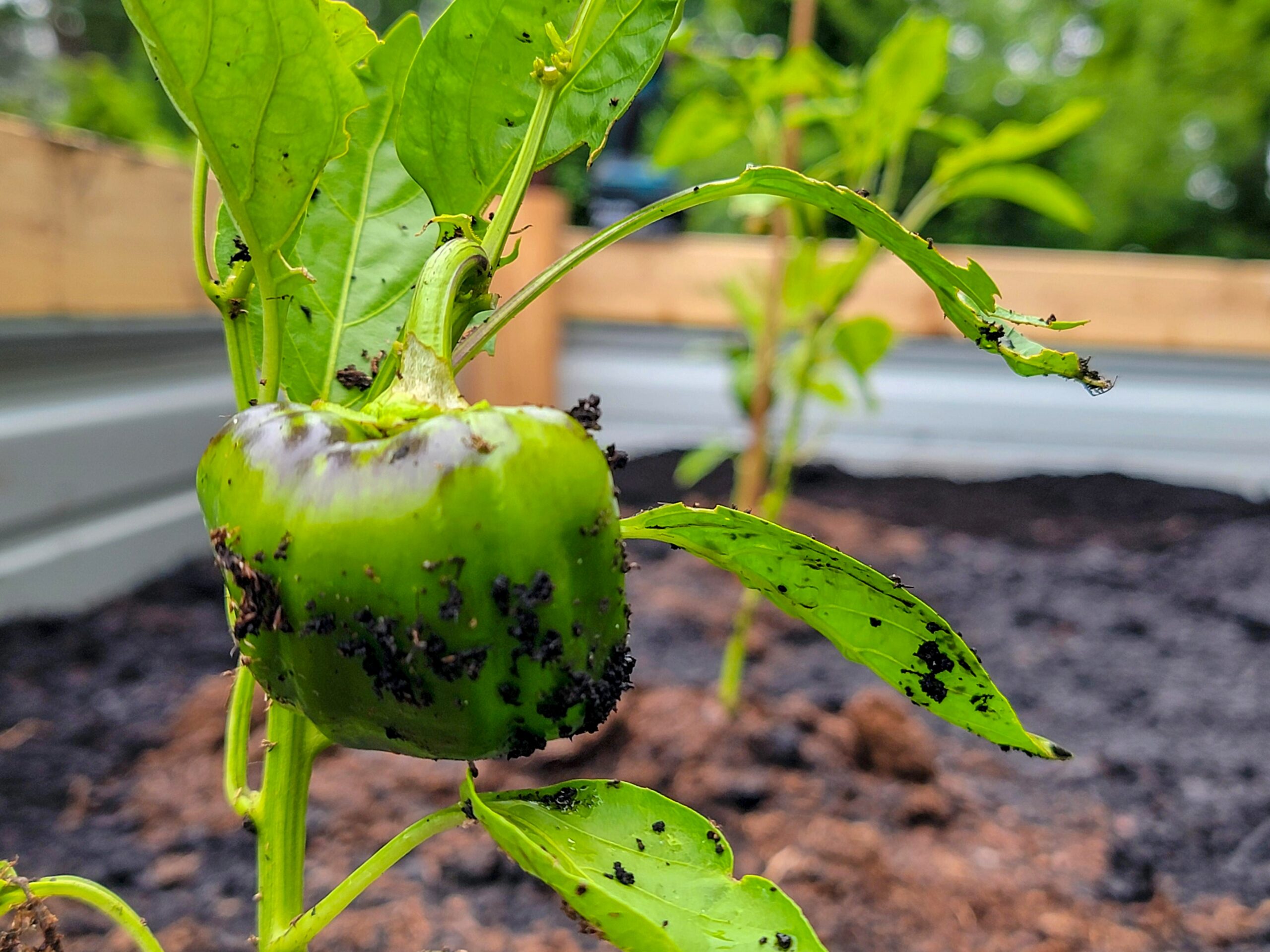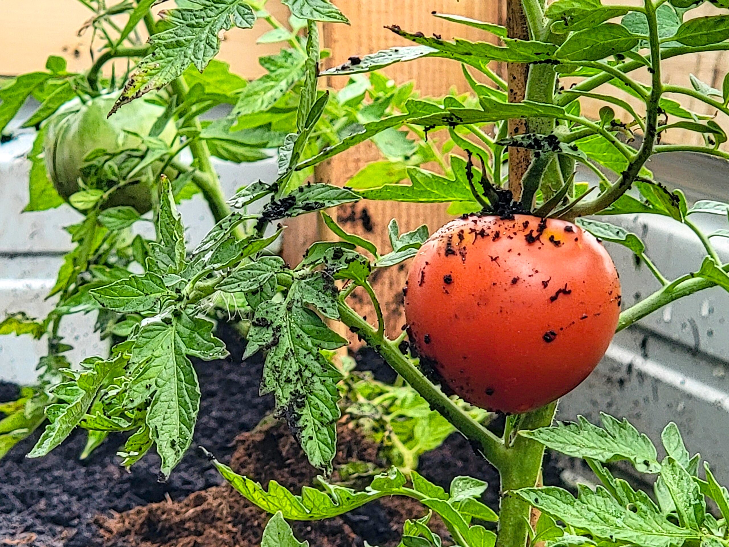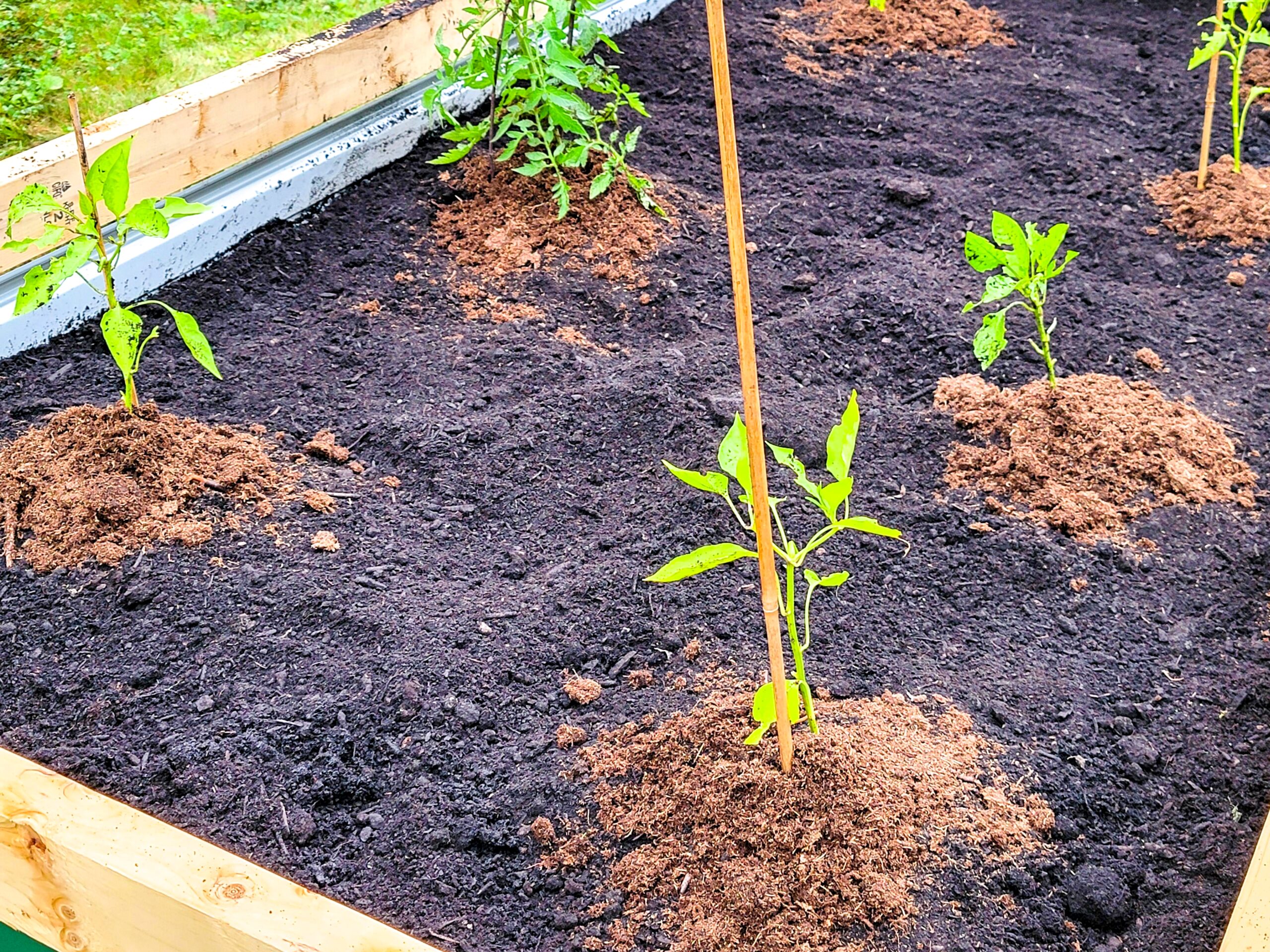 While all this community connection was happening, Shay was doing her plant whisperer thing – trimming leaves so they don’t touch the ground (because plant infections are definitely not invited to this party!). She even discovered these tiny mushrooms sprouting in our rich, dark soil. Nature’s little surprise gifts!