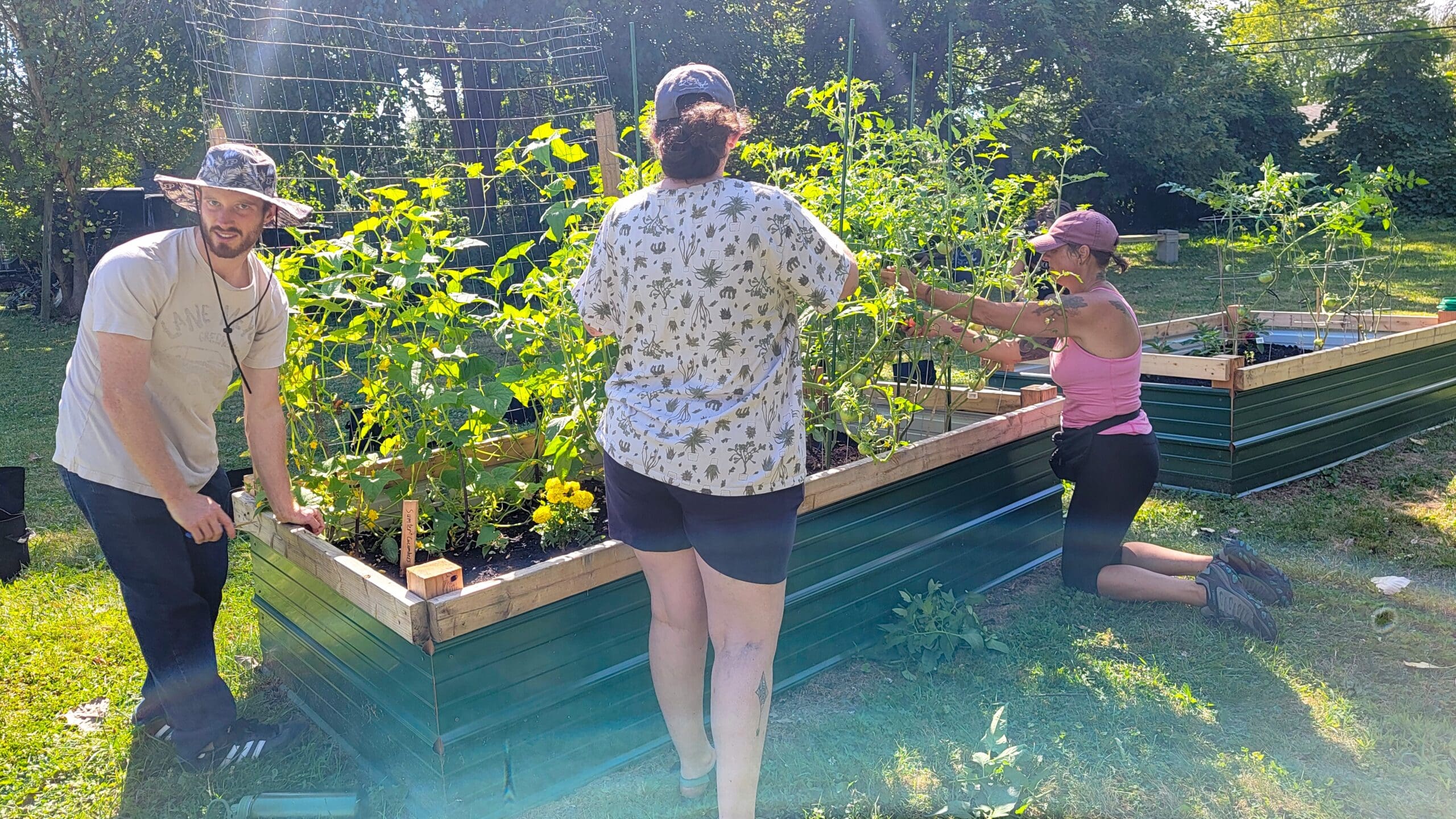 Shay started tackling the giving garden with some serious pruning action, and before you know it, everybody was pitching in to help. What would normally take forever became a group effort that wrapped up in less than an hour. Lauren was there trimming tomato plants, Jody was weeding the pollinator garden, and Khy was right in the mix helping out wherever needed.