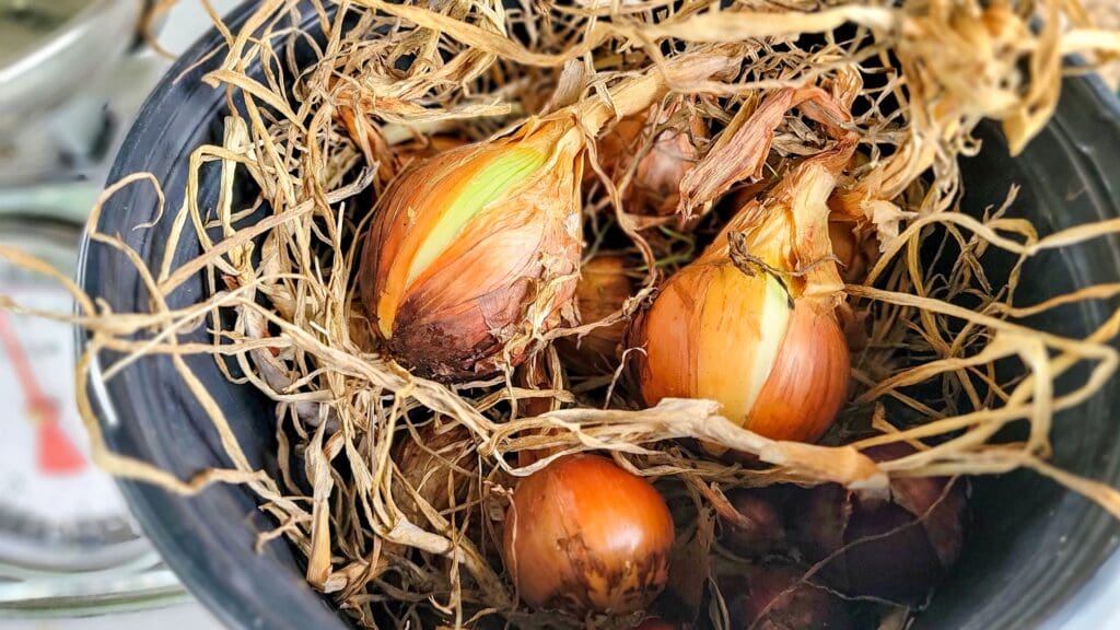 We had an especially exciting moment with our onion harvest. This year we tried something new – growing them in a grid system about 2 inches off the ground. The onions grow up through the grid, and here’s the cool part: normally when an onion plant starts to wilt and fall over, that signals the onion to stop growing. But the grid holds the plant upright, so the onion doesn’t get that signal and keeps on growing! Watching this technique in action was fascinating, and I’m already dreaming about the BLT with fresh garden onion I’m going to make for lunch.